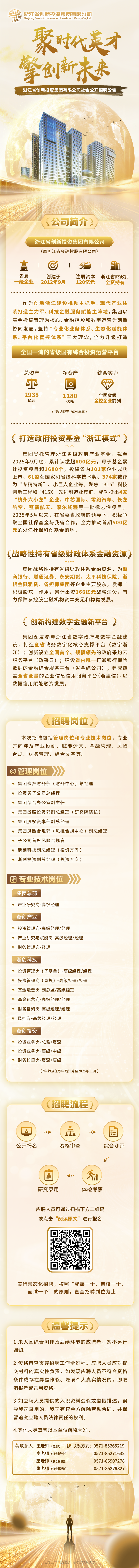 招聘 | 浙江省創(chuàng)新投資集團(tuán)有限公司社會(huì)招聘公告